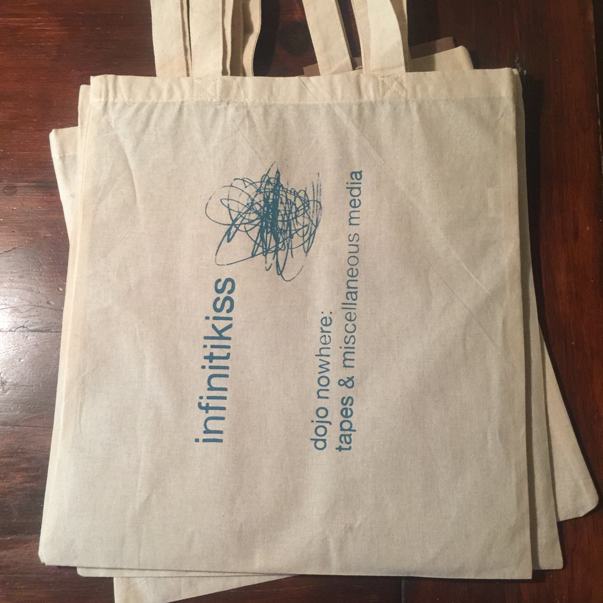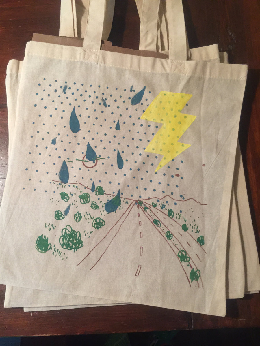 This design used 4 screens and 2 stencils. These cotton bags are large enough for a handful of records, or an armful of art supplies, or a tiny bounty of groceries, or a heap of other smaller bags.